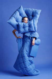 „Seekord visati tudengid silmitsi sinise kangaga – materjaliga, mis esialgu ei lubanud midagi erilist. Aga just see näiline neutraalsus muutus provokatsiooniks. Kangast ei hellitatud, vaid painutati, väänati ja nihestati, kuni algne vorm ja identiteet hakkasid lagunema. Algne materjal kaotas oma näo, oma loogika ja turvalise tähenduse. Lõpptulemuses on sinine kangas vaid mälestus – raskesti äratuntav, ümber mõtestatud ja täielikult üle võetud tudengite poolt,” kommenteerib töötoa üks juhendajaid kunstnik Flo Kasearu.