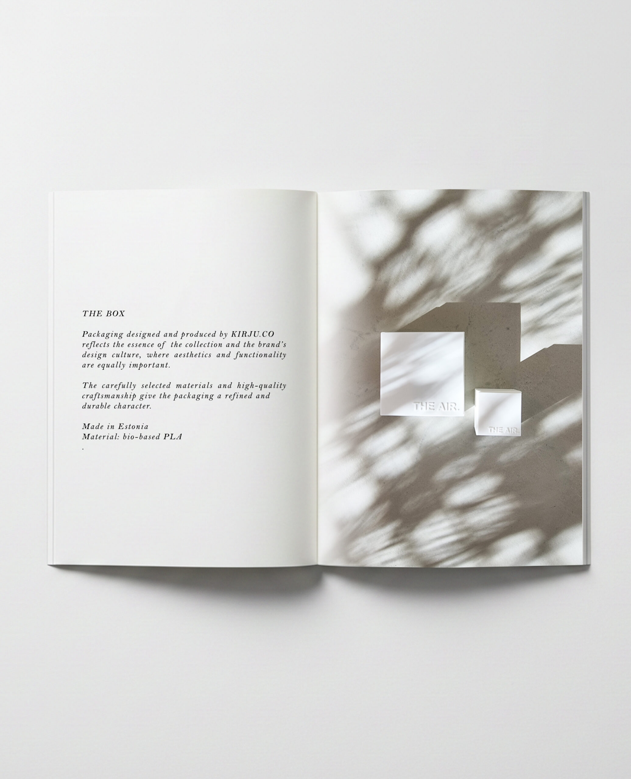 Kollektsiooni visuaalides korduv ajakirjamotiiv tähistab puhast lehte ja hetke, mil kõik võib alata uuesti. Sama mõtteviis kandub edasi ka pakenditesse, mis on disainitud ja valmistatud Eestis ning loodud peegeldama tasakaalu esteetika, funktsionaalsuse ja teadliku disainikultuuri vahel.